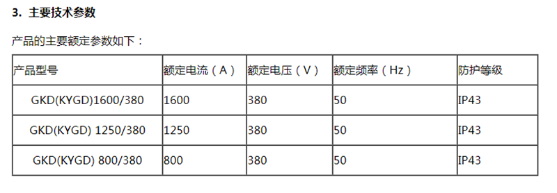 產(chǎn)品的型號(hào)為 GKD(KYGD) 1600/380